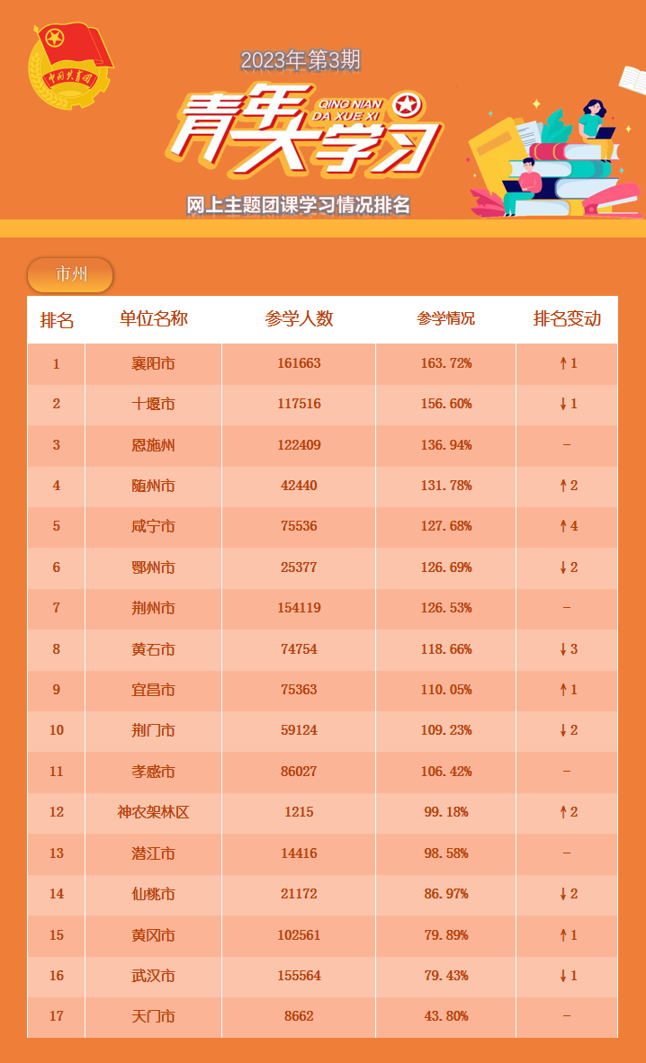 (注:参学率是依据实际参学人数和团员基数换算而来,超过100%属正常情况。)![]()